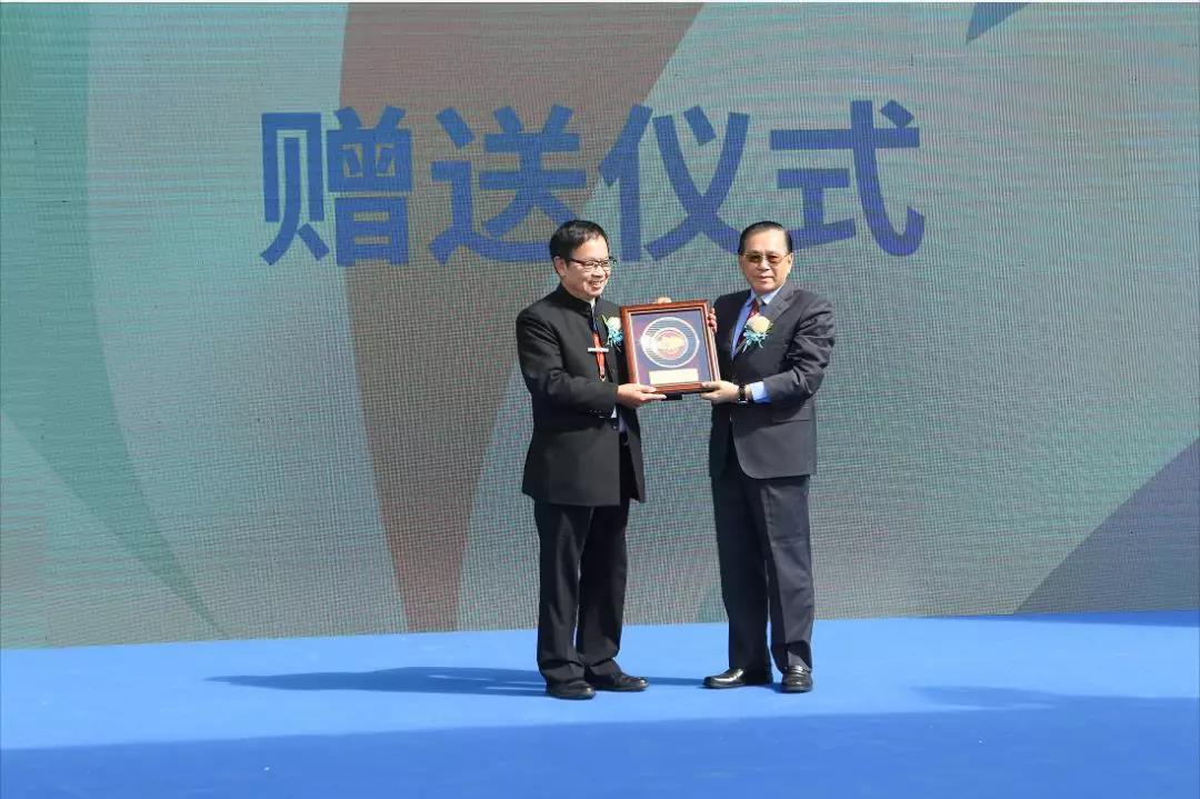 在這喜慶的時(shí)刻,由新加坡瓦楞紙業(yè)廠商會(huì)榮譽(yù)會(huì)長顧秋明先生為項(xiàng)目贈(zèng)送祝福禮物,力嘉國際集團(tuán)董事總經(jīng)理馬馀雄先生上臺(tái)領(lǐng)取。